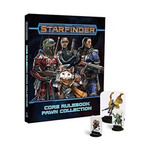 Open the shuttle bay doors and bring your science fantasy adventures to life with this beautiful pawn collection, designed for use with the Starfinder Roleplaying Game or any tabletop roleplaying game! Within the Starfinder Core Rulebook Pawn Collection, you'll find 100 unique creature pawns, including members of all core races and classes, perfect for representing your next character or deadly foes, as well as bizarre alien monsters to aid or challenge your players. In addition, you'll also find 15 unique starship models from the Starfinder Core Rulebook to help you better track the laser-filled chaos of space battles. Best of all, this set contains multiples of most pawns, so your heroes will always be able to face off against a horde of space goblins and security robots or blast their way through a fleet of warships!Printed on sturdy cardstock, each pawn slots into a size-appropriate plastic base from the Starfinder Pawns Base Assortment, making them easy to mix with traditional metal or plastic miniatures. The Starfinder Core Rulebook Pawn Collection is the best way to ensure you've got the perfect character for every Starfinder Roleplaying Game encounter!