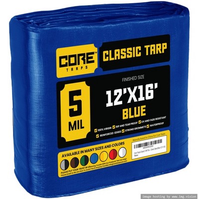 Core Tarps 144'' X 192'' Heavy Duty 10 Mil Tarp Cover, UV Resistant, Rip Proof, Blue, Poly Tarpaulin, for Roof, Camping, Patio, Pool, Boat