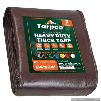 Core Tarps 288'' X 288'' Heavy Duty 20 Mil Tarp Cover, UV Resistant, Rip Proof, Brown / Black, Poly Tarpaulin, for Roof, Camping, Patio, Pool, Boat