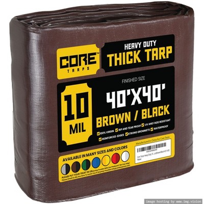 Core Tarps 480'' X 480'' Heavy Duty 20 Mil Tarp Cover, UV Resistant, Rip Proof, Brown / Black, Poly Tarpaulin, for Roof, Camping, Patio, Pool, Boat