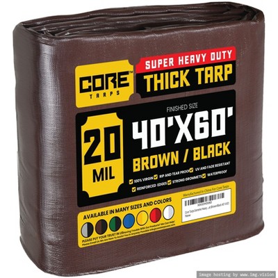 Core Tarps 480'' X 720'' Heavy Duty 10 Mil Tarp Cover, UV Resistant, Rip Proof, Brown / Black, Poly Tarpaulin, for Roof, Camping, Patio, Pool, Boat