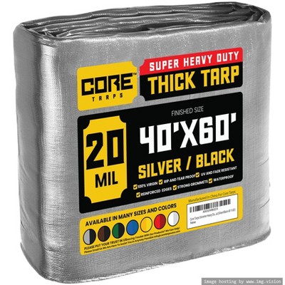 Core Tarps 480'' X 720'' Heavy Duty 5 Mil Tarp Cover, UV Resistant, Rip Proof, Silver / Black, Poly Tarpaulin, for Roof, Camping, Patio, Pool, Boat
