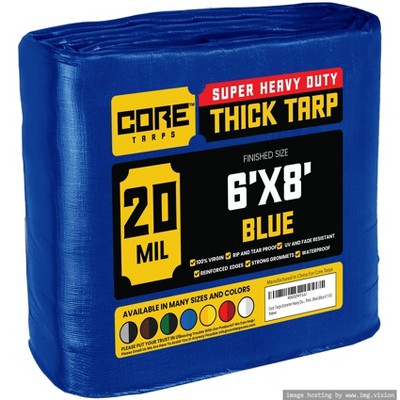 Core Tarps 72'' X 96'' Heavy Duty 10 Mil Tarp Cover, UV Resistant, Rip Proof, Blue, Poly Tarpaulin, for Roof, Camping, Patio, Pool, Boat