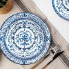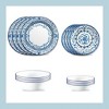 Seaside towns on the Italian coast inspired this intricate pattern in classic shades of blue. With the casual beauty of hand-painted tiles, you’ll set a perfectly charming table indoors or out.