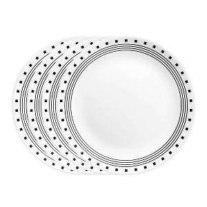 Black stripes and bold squares give this 16-piece dinnerware set its urban edge. Each piece has a different design, and the coupe shapes layer for a casual, contemporary look that’s great for everyday and entertaining. These versatile glass plates are easy to care for, going from microwave to table to dishwasher with ease. The extra-strong, triple-layer Vitrelle glass is lightweight, super durable and easy to care for, so you can enjoy worry-free use every day. The ultra-stackable design also makes for easy transport and ideal storage within any sized kitchen.