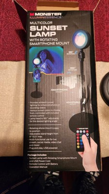 [This review was collected as part of a promotion.] The Monster Illuminessence Multicolor Sunset Lamp is a handy multicolored lamp for different occasions. With multiple color options, you can customize the lighting to fit the mood or occasion. The lamp comes with a remote control to adjust your colors and tempo. Overall, the Monster Illuminessence Multicolor Sunset Lamp is ideal for social media when you're looking to add a pop of color to your photo. My first impression while putting the lamp together was that it was sturdy and very simple to assemble. I like the fact it was a USB plug and play. I was amazed by the 10 color choices and that you can adjust the colors to flash, strobe, fade, or smooth. All in all, I really liked this light. If this type of light is what you're looking for, I would give the Monster Illuminessence Multicolor Sunset Lamp a go!