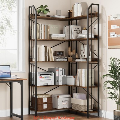 Corner Bookshelf 72" L Shaped Bookcase, Corner Bookshelves Industrial Bookcase 5 Tier L-Shape Bookshelf