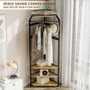 - Multi-functional Corner Coat Rack - Our 3-in-1 narrow Corner Coat Rack combines a coat rack, shoe rack and top storage rack. The clothes hanging rod, with 6 double hooks, provides plenty of space for your daily hanging options and keeps your entrance area tidy, making it a home organizer for your entrance, bedroom, and living room.
