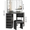 - 【Sturdy Material】This makeup vanity is made of wood material, which has a strong load-bearing capacity, stability, smooth surface, and is easy to clean. The corner dressing table's design allows for a perfect fit in the bedroom or bathroom corner, saving space and providing an ideal area for storing and applying cosmetics.
