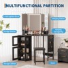 - 【Sturdy Material】This makeup vanity is made of wood material, which has a strong load-bearing capacity, stability, smooth surface, and is easy to clean. The corner dressing table's design allows for a perfect fit in the bedroom or bathroom corner, saving space and providing an ideal area for storing and applying cosmetics.