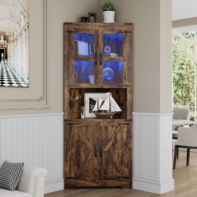 Whether used in the living room, dining area, kitchen, or office, this corner storage cabinet combines functionality with style. Its sleek design and lighting feature make it a standout piece that enhances your home decor while keeping your space tidy and organized. Upgrade your storage solutions today with this versatile and attractive corner cabinet.