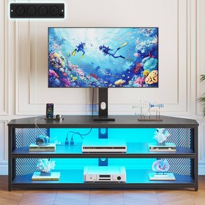 Corner TV stand with power socket and LED light, storage TV console table, swivel and height adjustable - 1 of 4