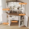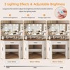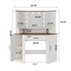 This vanity with a large mirror delivers a full-view reflection for precise makeup, boosting your daily beauty routine. It has adjustable LED lighting to customize brightness for perfect makeup or skincare conditions, plus multiple drawers, shelves, and an extra-wide work surface—keeping cosmetics, tools, and essentials organized and accessible, with a clutter-free, comfortable space to sit. Rounded corners ensure family safety, and the central large drawer adds convenience for secure storage of bigger items.