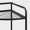 - Features wire rack base and hanging hooks