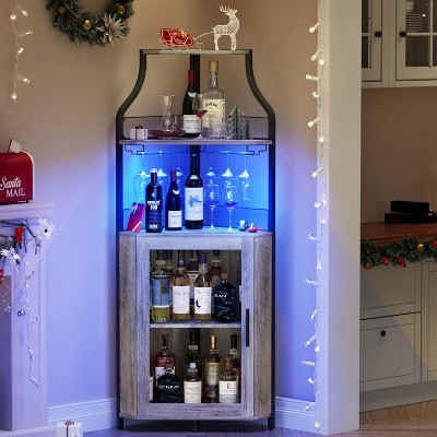 Corner Wine Bar Rack Cabinet with Detachable Wine Rack, Bar Cabinet with Glass Holder