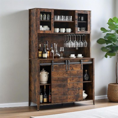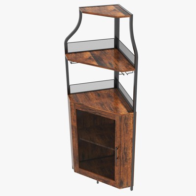 Corner Wine Rack, with Detachable Wine Rack, Bar Cabinet with Glass Holder, Small Sideboard and Buffet Cabinet with Mesh Door