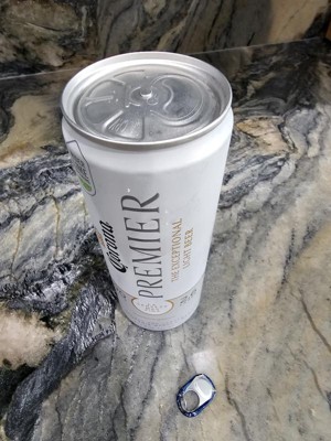 I enjoy Corona, Light, etc., so I tried Premier. Purchased 12 oz cans on my way to a pool party. Two of the four tabs broke off trying to open. Tossed them full, unopened. Made a point to use a tool to assist in opening with the remaining cans. Flimsy tab is a beer-blocker! Great beer otherwise.