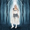 Are you ready to float around looking for your corpse husband in our Womens Corpse Bride Halloween Costume? It's a spooky Halloween costume idea for anyone that wants to transform into a classic undead bride. It also makes an excellent couples costume idea. May the wisp of your breath haunt those that did you wrong and may you seek the ultimate revenge… as you go in search of your one true love this Halloween. The Womens Corpse Bride Halloween Costume includes a cream and grey bridal-design dress with light chiffon-style fabric. It features jagged edges and hems for a worn ghoulish look, with the top of the dress featuring a white satin corset bodice with lace up detailing. Completing the look is tattered looking white and grey veil, attached to a ribbon ruffled headband. Practice your ghoulish screams and haunting moves as you get party ready this Halloween.