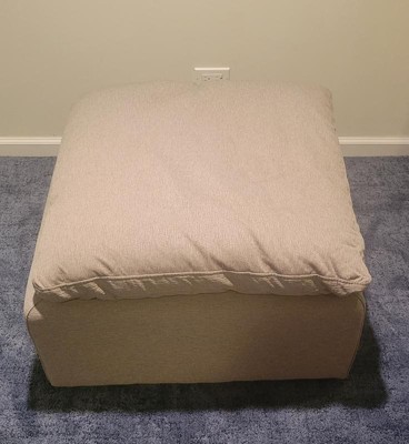 [This review was collected as part of a promotion.] This ottoman is perfect for kicking your feet up after a long day - the top cushion is very soft for resting your heels on and getting comfortable. It pairs wonderfully with the armless and/or corner chairs that are apart of this collection, and I definitely recommend it! Just keep in mind that if you rest your legs/feet for awhile you will have to re-fluff the cushion a little bit to return it to its original shape.