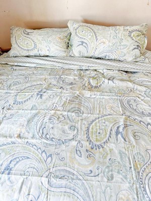 The Cortona Paisley Duvet Cover Set by Levtex Home is modern, delicate. Offered in green, yellow, blue and white, this design will immediately transform your bedroom. Made with a soft and luxurious cotton, this duvet cover set features a intricate green, yellow, blue, and white paisley. It has a intricate paisley on the front and a blue leaf checker on white on the reverse. It closes with easy to use, durable buttons. The Cortona Paisley Duvet Cover Set is machine washable and includes the duvet and pillow case. Enjoy this for years to come!