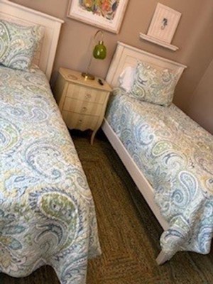 - LEVTEX CORTONA PAISLEY QUILT BED SET: A intricate green, yellow, blue, and white paisley bedding set consisting of a quilt and matching pillow shams. Used by itself, as a layering piece or as a bedspread, this bedding set is extremely versatile.