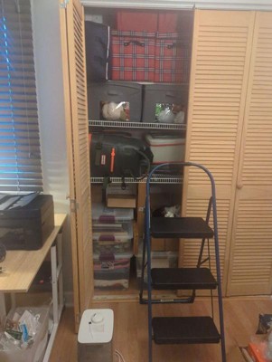 [This review was collected as part of a promotion.] As a petite (5 foot 3 inch) person, it can be really difficult to reach the tops of cabinets, shelves, and closets in my home. This step stool is the perfect height to reach things (and safer than standing on a chair) and folds flat when not in use. My previous step stool was too short for top top shelves, but the extra third step here is perfect!
