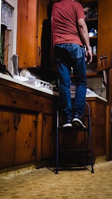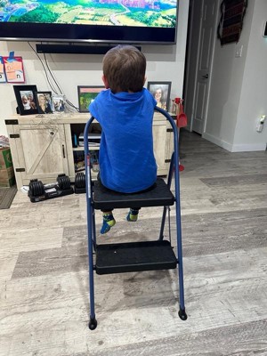 [This review was collected as part of a promotion.] This is the perfect step stool to throw in your closet to pull out for household use. It’s nice to get to the tops of the shelves in our home since my husband got rid of the stools under our bar. My son also loves it as his new seat to watch a show. My only downfall was there isn’t any grips on the bottom, so it slides around on our hardwood floor. I’m sure it’s similar on any smooth surface.