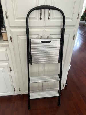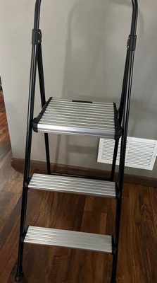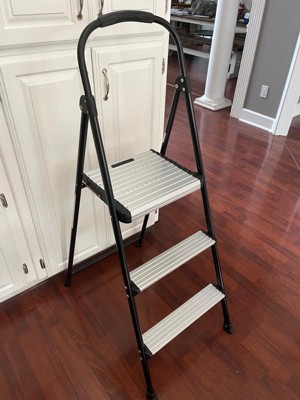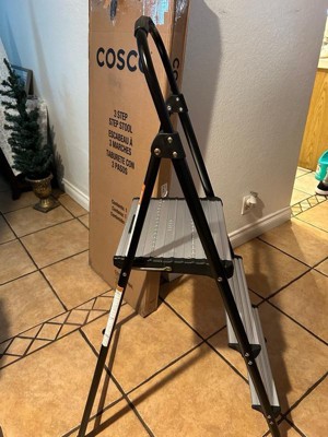COSCO 3-Step Folding Aluminum Step Stool with Rubber Grip and 29-Inch Tall Top Step, Silver/Black