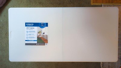 [This review was collected as part of a promotion.] I love everything about the COSCO 4 ft. Centerfold, Blow Mold Utility Table, Adjustable Height, White. It easily folds up so nice and compact. It barely takes up any room at all. It is easily adjustable It goes down nice and low for the little children. It extends to a great height for a buffet table and mid range dining table with plentyof leg room. Nicely made very sturdy with a heavy duty construction I feel will last for many years. Easy to assemble and set up in a mere seconds. So happy to have this as a spare table.