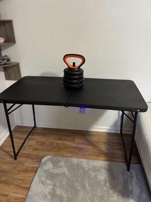 [This review was collected as part of a promotion.] I was given this item in exchange for my honest review. First, the positives. I got the 4 ft table in black. The table is lightweight and has a handle to easily move around. The table, also, is sturdy and as I placed a 20lb kettle bell on it. Now, the negatives… even though the table is sturdy, it feels flimsy & cheap. The instructions are stuck as stickers to the inside/underside of the table, leaving me to figure out how to open it on my own. Once opened and after extending the legs to make ut taller. It definitely made me nervous to put anything I care about on it because there is no listed weight limit listed. Additionally, the workmanship is sloppy as one side has visible glue looking like my niece’s art project. I added a picture. Overall, if I had not been gifted this table I wouldn’t buy it on my own.