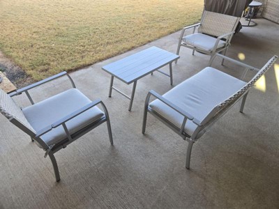 [This review was collected as part of a promotion.] I adore this Cosco 4-Piece Folding Conversation Set. It's foldable, which I truly prefer, so I can easily store this or haul somewhere. It's very convenient for me. There is no need for any tools . You just unbox and unfold everything . It came in a very sturdy box. I unbound it alone , and I have no assistance from someone .It's lightweight but very sturdy. All you have to do is clip it and be done. This is a no- brainer setup. I placed it on our gazebo. Comfortable to sit on . Comes with stain-proof cushion so easy to wipe clean. The base is also presentable when without a cushion. Weather in where I live has scorchjing summer and freeze during winter.This is made up of metal and coated, so this would last a long time. Overall, I'm happy!