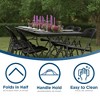COSCO deluxe 8 foot x 30 inch fold-in-half blow molded folding tables cater to any event including birthday parties, holiday gatherings or outdoor barbecues in the summer. They can be dressed up or dressed down depending on your specific needs, making them a multipurpose and versatile product! This table features a waterproof top that resists all manners of messes and elements of weather. When it's time to take down the table, the efficient features save space and time with legs that fold in and a center folding feature that makes storage virtually effortless! The plastic handle included in the frame make this light weight product easy to carry and transport from place to place. Non-marring leg tips complete this table to ensure floors are not scratched or scrapped during use. The heavy duty strong steel frame, steel legs, and a low maintenance, sturdy easy to clean top will make your next events stress free and ones to remember as you enjoy the moment!