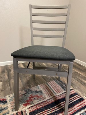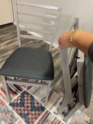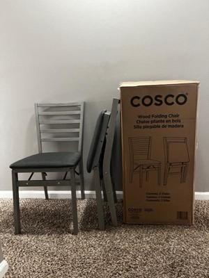 COSCO Contoured Back Wooden Folding Chair with Fabric Seat, Set of 2, Gray Wash