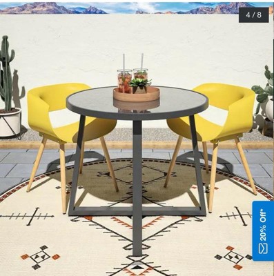 Use this COSCO 35" Round Table as your trusted solution for dining and entertaining. Ideal for both indoor and outdoor use, this round table is great for hosting intimate dinner parties with friends and family or dining al fresco in the sunshine and fresh air. This table comfortably accommodates two to four people at a time, making it great for small space living and ready to serve all your hosting needs! This table is available in a modern and sleek dark gray color featuring a glass surface that breathes new life into all backyard or home décor aesthetic. Constructed using weather resistant, durable powder coated steel, the heavy-duty materials help this table withstand all outdoor elements and has a 100lbs. weight capacity rating. With some assembly required and necessary tools provided, this table is seamless to put together and virtually ready to use right out of the box. Create your dream dining arrangement for entertaining and everyday use!