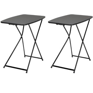 Enhance your living area, dorm room, or pool side lounger with the COSCO 18” x 26” adjustable height personal folding tailgate table. Made to complete your multipurpose needs, this collapsible product is not only perfect for indoor use, but can be put to the test with your outdoor entertainment needs to give you peace of mind. Built with a polypropylene table top, the table is able to handle all manners of food, drinks, homework assignments, and other activities up to 30 pounds. Its powder coated steel frame makes the table a durable and heavy duty product which promises to be a long-term purchase for all ages with its three height options! Rubber leg tips featured with the table prevent slipping on all floor surfaces and guarantee to protect them from all types of damage when in use. When the homework is finished and your tailgate is complete, take down is easy as the legs fold flat into the table top. This compact feature not only promotes small space living but guarantees non-invasive storage as you place it in closets or under a couch – out of sight, out of mind! The table is sold as a 2-pack. Dimensions: Lower position: 26"W x 18"D x 25"H Upper position: 26"W x 18"D x 28"H