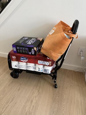[This review was collected as part of a promotion.] I’ve been wanting a hand cart for a while because I’m constantly hauling stuff and this one is HIGH QUALITY metal. I love that it collapses flat for easy storage and convert from a cart to a dolly. I use it when bringing in bulky items from my car to work or parties and it’s great for bringing in groceries from my trunk to home. It took me a few min to figure out how to open it and close it at first but you just have to read the picture stickers on the handles which show you how. This would make a great gift for parents/grandparents.