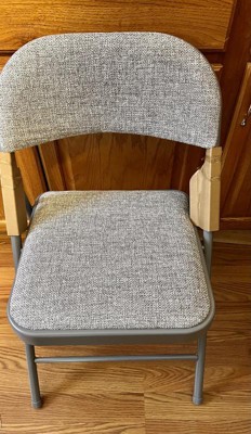 [This review was collected as part of a promotion.] Nice chairs I really like the look of these! Instead of your standard metal chair these have a nice gray paint and complementing comfortable gray fabric on the backrest and seat making for a comfortable sit. Easy to fold down and fold back up and put away, and these are great for when you have extra guests over and need some extra seating! These will definitely be put to good use this summer with company. I highly recommend!