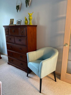 I ordered this chair in light blue & I love it! It is the perfect accent chair for our bedroom. It’s comfortable as well as functional.