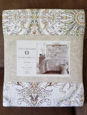 Cosima Medallion Quilt Set - Full/Queen Quilt and Two Standard Shams Beige, White - Villa Lugano by Levtex Home