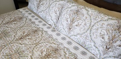[This review was collected as part of a promotion.] This is more of a thin coverlet than a quilt weight, which for me is a huge plus. It's a great weight for hot Texas nights or can be used as an extra layer during cooler seasons. As an added plus the thinner batting makes it easy to machine wash and dry. However, if you are looking for a heavier weight quilt this won't be it. The Cosima pattern is a great neutral with cream, browns, tans, greens and blues and a reversible design. Two matching standard shams are included. Both the front and back fabric are 100% cotton making it soft and cool. Many "quilts" now are bonded rather than stitched, the Villa Lugano quilts are stitched making them better quality. The full/queen size did fit my queen with a little overhang, personally I love a longer quilt and wish these came in queen rather than full/queen which tends to be smaller.