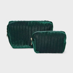 This velvet cosmetic pouch holds so much. Such a great design I love the small and large. The pink is so cute and so is the green. What great shades of colors.