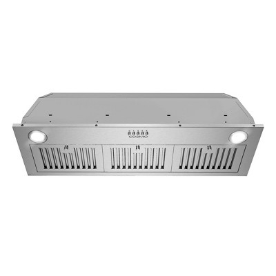 Elevate your kitchen aesthetic with the Cosmo COS-36IRHS insert range hood, seamlessly blending modern design with functionality. This range hood fits into a custom cabinet enclosure, offering a seamless look. Crafted with premium brushed stainless steel to withstand high heat, grease, oil and steam. Take control with three adjustable fan speeds and built-in energy-efficient LED lights to illuminate your kitchen. Cleanup is a breeze with removable, permanent, and dishwasher-safe stainless steel filters, providing year-round savings. A 3-prong power cord is included for easy installation. A better home starts with Cosmo. Part of the Lumin Collection bringing enhanced functionality and design, offering a well-rounded option for those looking for more convenience and style in an appliance.