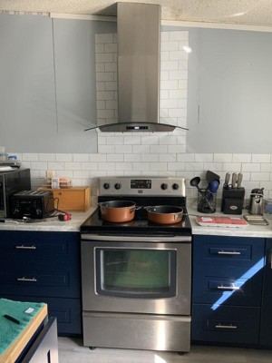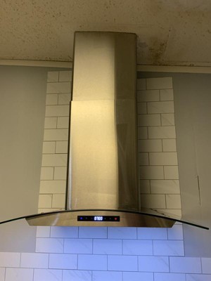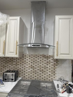 I was unsure on how this range hood would look in my new kitchen. I was very surprised at how it looked and how it worked in my new kitchen. A very sleek and modern look that blended well in my new kitchen