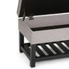 Hand constructed using solid wood, plywood, foamUpholstered with a durable Cloud Grey Linen Look FabricFeatures lift up lid with child safety hinge to prevent lid slamming, large interior storage and open slat bottom shelfMulti-functional ottoman can be used in bedroom, living room, family room, hallway as an entryway bench or provide additional sittingTransitional design includes tufted detailAssembly RequiredDimensions: 17in D x 43.5in W x 18.9in HEfforts are made to reproduce accurate colors, variations in color may occur due to computer monitor and photography