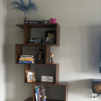 Costway 5-Tier Bookshelf Geometric S-Shaped Bookcase Room Divider Storage Display Shelf