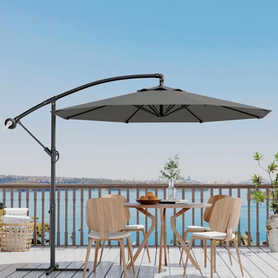 Costway 10 FT Patio Offset Umbrella w/ X-shaped Base Infinite Tile & 360° Rotation Grey