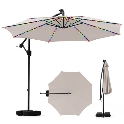 Costway 10 FT Solar Offset Hanging Umbrella Patio Cantilever Umbrella with 32 LED Lights Brown/Turquoise/Beige/Gray/Red