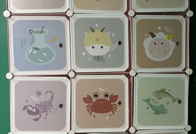 Costway 12-Cube Kids Wardrobe Baby Dresser Bedroom Armoire Clothes Hanging Closet with Doors Pink