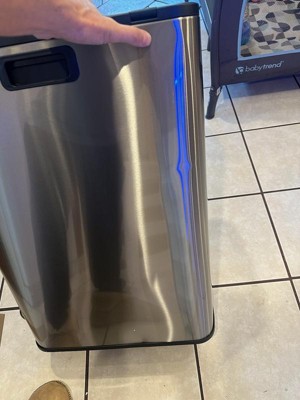 Was looking for a sleek stainless trash can for my kitchen and this did not disappoint. It fits directly under my overhang and does not hit the bottom of the counter when open. Easy to put a trash bag (13L) in and out. Perfect solution.