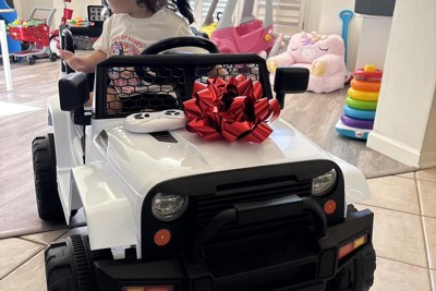 Rides great and easy to steer with remote. Only complaint is that the door won’t stay shut even with the plastic lock in use so it sometimes comes open while kid is driving and lights are also all fake. Sound is really annoying. It’s one song or someone narrating some book.